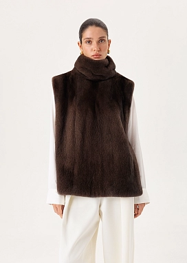 Манишка из норки орехового оттенка в лаконичном дизайне мягко окутывает теплом и заботой.