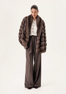 Полупальто из меха соболя с цельным шалевым воротником и цельными манжетами