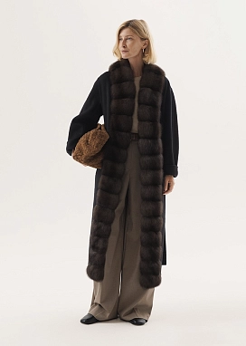 Пальто с бортовой отделкой по бокам из натурального меха баргузинского соболя.
