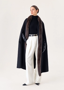 Кейп из кашемира глубокого благородного оттенка украшен отделкой из соболя.